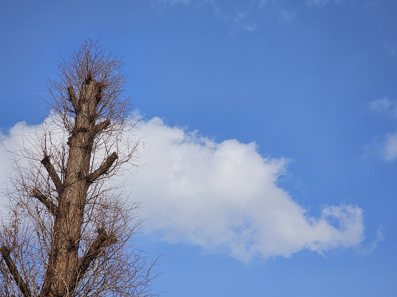오늘 공유하는 이승하 시인은 "낮과 밤/둘 중 하나를 택일하라면/난 밤의 하수인"이라며 스스로 ‘어둠’의 편에 선다. 그리고 "별 한 개 보이지 않는 이 어둠 속에서/두 눈 부릅뜨고/날 밝기를 기다리리’라고 다짐한다. 이렇게 캄캄한 어둠의 세계에서 그의 역할은 "감시하듯이, 아니, 망을 보듯이"라는 마지막 문장에 함축돼 있다. 나도 이 어두운 시국에서 감시하고 망을 본다. 그리고 오늘 아침 사진처럼, 잘렸어도 봄을 기다린다.