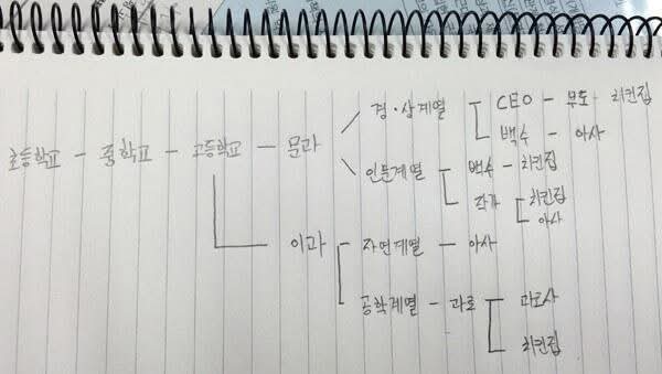 - 문과도 이과도 결국에는 다 '튀겨야' 하는 인생이다. 졸업하고 바로 치킨집을 차리느냐(문과), 아니면 취업이라도 한번 해보고 차리느냐(이과) 경로만 다를 뿐 치킨집으로 다 수렴된다. 어차피 일자리 없고(문과), 언제 잘릴지 모르기 때문에(이과) 다들 치킨집으로 다 수렴된다.