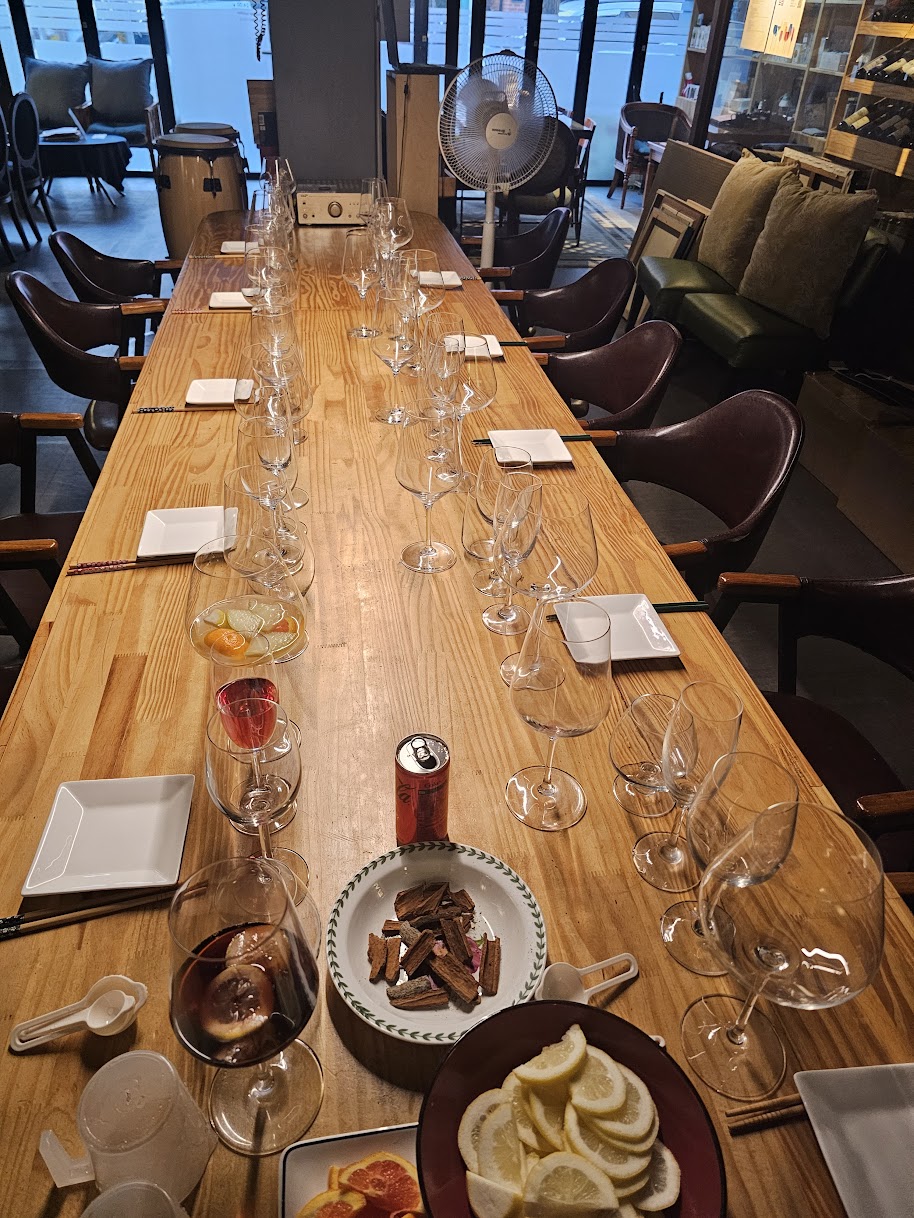 그 외에도 많은 경험들이 있을 것이다. 종종 오감이 보고 듣고 맡은 것을 적는다. 아이들이 자라 "엄마는 이 척박한 세상에 왜 우릴 낳았어?"하고 따진다면, "세상엔 고통 · 폭력 · 상처도 넘치지만, 눈 · 코 · 귀가 아니었다면 몰랐을 경이도 많아"라며 말 할 수 있을 것이다. 나는 와인을 함께 마실 때와 오늘 공유하는 시를 만났을 때이다. 오늘 사진은 저녁에 있을 와인 칵테일 강의 준비 사진이다.