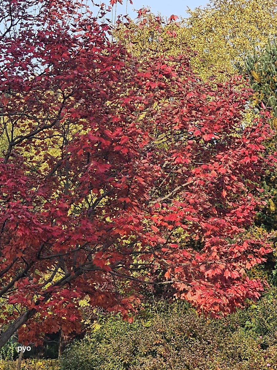 가을 단풍이 곳곳에 다 절정이다. 아무래도 올해 단풍은 조금 멀리서 봐야 한다. 여름이 10월까지 이어지며 나뭇잎들은 제때 옷을 갈아입지 못했다. 강한 햇살은 잎의 끝을 태웠고, 그늘에서는 색이 돌지 않았다. 가까이서 보면 상처가 먼저 보인다. 구멍 난 잎 맥, 부서진 가장자리, 여름과 겨울이 뒤섞인 어색한 흔적들. 하지만 멀리서, 아주 멀리서 바라보면 이야기가 달라진다. 한 장 한 장은 불완전해도, 모이면 여전히 계절의 무늬를 그린다. 상한 잎도 서로 기대어 붉음과 노랑의 군집을 이룬다. 단풍의 아름다움은 어쩌면 이 ‘멀리서 본 전체’에 있는지도 모른다. 단풍이 물들려면 추위와 시간이 필요하다고 한다. 올해는 그 시간이 늦었다. 잎은 광합성을 멈춰야 색을 얻는데, 햇살이 너무 길었다. 그 햇살이 나뭇잎 속의 질서를 흐트러뜨렸다. 그럼에도 나뭇잎은 계절의 일을 멈추지 않았다. 많은 잎이 익기도 전에 떨어졌지만, 남은 잎들은 끝까지 버텼다. 조금 덜 붉고, 조금 덜 선명하지만, 여전히 가을이라 부를 수 있는 빛을 낸다. 그 불완전함이 올해의 정직한 색 같다. 조금 멀리서, 조금 천천히 보면 아름다움이 보인다. 상처가 모여 만든 전체의 색 말이다. 단풍은 ‘초록이 지쳐 단풍 드는’ 것이 아니라, 초록의 생명이 마지막 열정으로 뿜어낸 절정의 환희이다. 노년도 저 금빛의 풀밭과 단풍 든 나무들처럼 아름다운 모습으로 서서히 사라져가는 것이다. 그러니 늙는 것을 서러워 말 일이다. 오늘도 이 가을을 즐기며, "가을의 어록"를 받아 적으리라. "작은 씨앗 하나에 든 가을 문장을 읽다가/일생을 보낸 사람도 있다"니까.