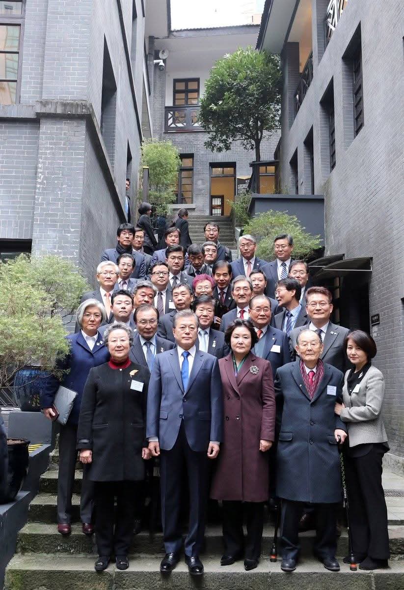 간담회에는 이 여사 등 충칭 거주 독립유공자 후손 6명과 이종찬 대한민국 임시정부 기념관 건립추진위원장 등 서울 거주 후손 4명이 참석했다. 문 대통령은 아울러 충칭에 있는 광복군 총사령부 복원 문제를 비롯해 중국 내 독립운동 사적지 보호를 위해 우리 정부가 더욱 노력하겠다고 강조했다.