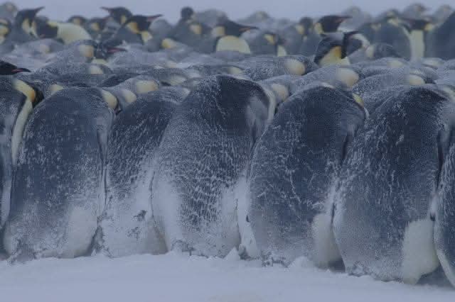 남극의 겨울은 혹독하다. 영하 50도를 넘나드는 한파와 시속 100㎞가량의 눈 폭풍이 몰아치기 일쑤다. 두 발로 알을 품은 황제펭귄들은 무리를 이뤄 서로의 체온을 주고받으며 바깥쪽에서 안쪽으로, 안쪽에서 바깥쪽으로 2~3시간 간격으로 이동하는 ‘허들링’으로 생존을 유지한다. 무리 안쪽은 바깥쪽보다 10도가량 높다.