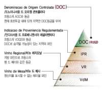 ① DOC(Denomiaçâo de Origen Controlada): 프랑스의 AOC에 해당되는 최상급 와인이다. 옛날부터 와인 특산지로 지정되어 역사와 전통을 자랑하는 지역으로 포르토(Porto), 도우로(Douro), 마데이라(Madeira), 카르카벨루스(Carcavelos), 세투발(Setùbal), 다웅(Dão), 바이라다(Bairrada) 등 24개 지역이 와인의 라벨에 표기할 수 있다.