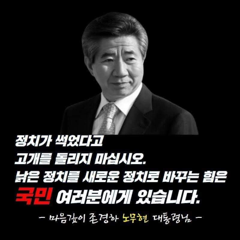 ▪ 노무현 뽑아서: 할 말하는 세상 만들고, 원칙 통하는 세상 되고, 사람사는 세상 만들고, 기본 지키는 세상 되었다.