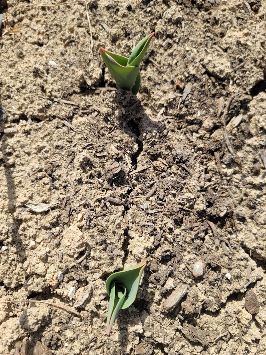 3월 들어 첫 토요일이다. 아직 아침 저녁으로는 춥지만, 한 낮은 봄바람을 느낄 수 있다. 드디어 나는 오늘부터 주말농장에 나갔다. 땅을 갈아 엎고, 퇴비를 뿌리고 왔다. 내 밭 옆 동료는 벌써 튤립을 심어, 오늘 아침 사진처럼, 새싹이 새의 부리처럼 살짝 모습을 드러냈다. 해가 뜨기 전, 봄날의 새벽에 밭에 나가면, 땅 속에서 얼었던 물기가 반짝이는 서리가 되어 새싹처럼 땅 위로 피어난다. 이게 봄 서리다. 흙은 늦가을 서리에 굳어지고, 봄 서리에 풀린다. 김훈은 "봄 서리는 초봄의 땅 위로 돋아나는 물의 싹"이라고 말한다. (김훈, <자전거 여행 1>) 풀 싹들은 헐거워진 봄 흙 속의 미로를 따라서 땅 위로 올라온다. 흙이 비켜준 자리를 따라서 풀이 올라온다. 이건 놀라운 생명의 힘이다. 생명은 시간의 리듬에 실려서 흔들리면서 솟아오르는 것이어서, 봄에 땅이 부푸는 사태는 음악에 가깝다. 경이(驚異)이다.
