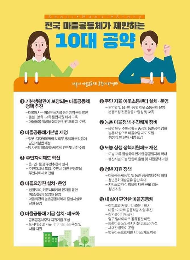 내가 살고 있는 동네가 그걸 실천 가능하게 한다. 전면적으로 우리가 살아가고 있는 삶의 방식을 되돌아 볼 시간이다. 많은 행사들이 취소되고, 불특정 다수가 모여 있는 장소에 가길 꺼려 하는 '강요 받는' 삶 속에서 숙고할 많은 시간들이 주어졌다. 오늘 아침은 전국 마을공동체가 제안하는 10대 공약을 공유한다. 코로나 19같은 전염병이 계속 창궐할 것이다. 이젠 피할 곳은 마을 공동체이다. "소국과민(小國寡民)의 마을에서 노자가 말하는 삶을 살 수 있다면 각종 재난으로부터 보호받을 것이다. "내 삶이 편안한 마을 공동체"를 만들어야 한다. 오늘 아침 시처럼, 이런 시골길이 그립다.