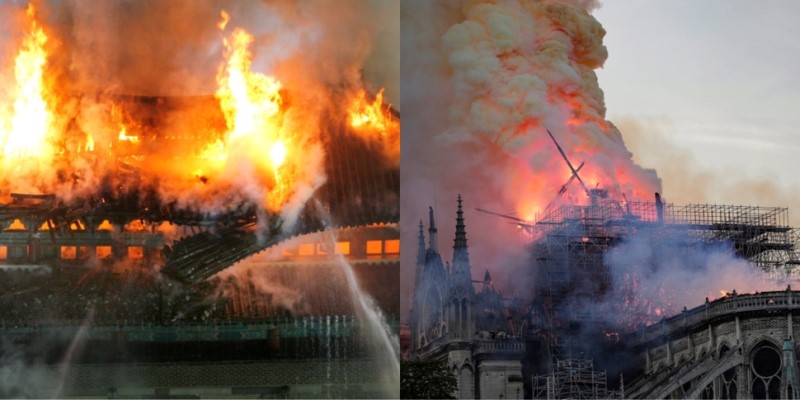 파리의 노트르담 대성당은 중세 이후 파리에 있었다. 중심에서 오랜 세월 동안 파리와 프랑스의 변화를 지켜보고, 함께 했다. 그래 단순히 문화 유산, 관광지가 아니라, 종교, 역사의 상징이었기 프랑스 인들은 물론이고 우리들도 더 충격적이었다. 정확한 것은 아니지만, 성당 외부의 오염 물질을 청소하기 위한 공사장에서 발화된 것으로 추정한다. 공사를 할 때, 이런 역사의 상징인 곳은 더 각별한 주의를 하여야 한다.