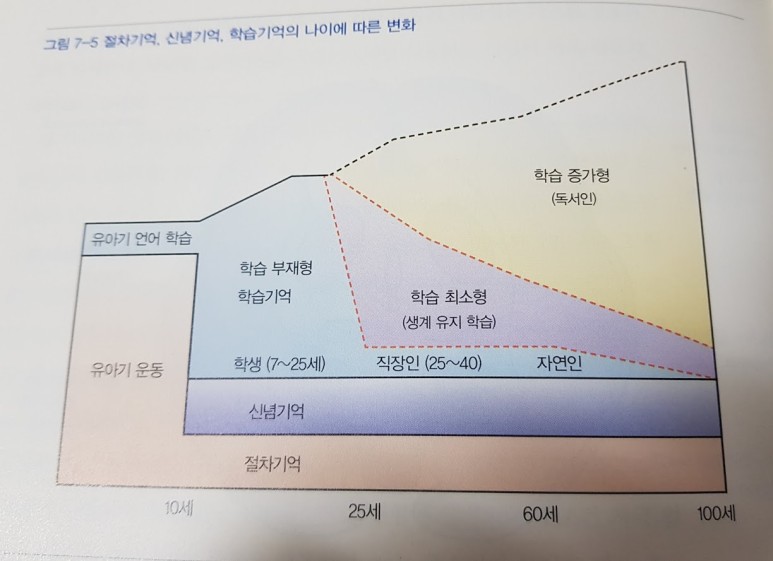 독서나 체험을 하지 않으면, 즉 새로운 기억을 넣지 않으면, 절차 기억과 신념 기억으로만 사는 꼴이 된다. 우리 동네 박문호 박사의 책, <<뇌 과학 공부>>중에서 가져온 거다. 나이가 들수록, 우리는 학습을 해야 한다. 그림이 말하는 것처럼, 60세에 배움을 하지 않으면, 독서인 처럼 학습 증가형이 되지 못하고 아직까지도 절차 기억과 신념 기억에 지배를 받는 자연인이 된다.