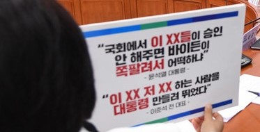 대통령은 21일 오후 글로벌펀드 회의에 참석한 뒤 참모들과 걸어 나오면서 “국회에서 이 새끼들이 승인 안 해주면 바이든이 쪽팔려서 어떡하나”라고 말하는 듯한 장면이 방송사 카메라에 포착돼 그의 욕설과 비속어 논란이 강하게 일고 있다. 이에 대통령실 홍보수석은 15시간 만인 22일 오전 브리핑을 열어, 대통령의 발언은 “국회에서 이 새끼들이 승인 안 해주면 바이든이 쪽팔려서…”가 아니라 “국회에서 이 새끼들이 승인 안 해주고 날리면 쪽팔려서…”라고 반박했다. 그러니까 대통령실 홍보수석은 22일에 '이 새끼들'은 미 의회가 아니라 한국 야당을 겨냥해 말한 것이고, '바이든'이 아니라 '날리면'이라고 바로잡으면서 "미국(의회) 이야기가 나올 리가 없고 바이든이라는 말을 할 이유는 더더욱 없다”고 해명했던 것이다. 야당을 겨눈 것이라는 취지다. 대통령실의 이 같은 공식 해명을 듣고 솔직히 놀라지 않을 수 없다. 듣는 사람마다 다르게 들릴 수는 있겠지만, 대부분의 사람이 들었던 것과는 상당한 차이가 있기 때문이다. 하여간 누구의 주장이 맞는 것인지는 관련 영상을 접한 우리가 판단할 문제다. 이번 일로 인해 우리 국민은 이미 깊은 상처를 받았다. 대통령이 국민을 부끄럽게 만들었다.