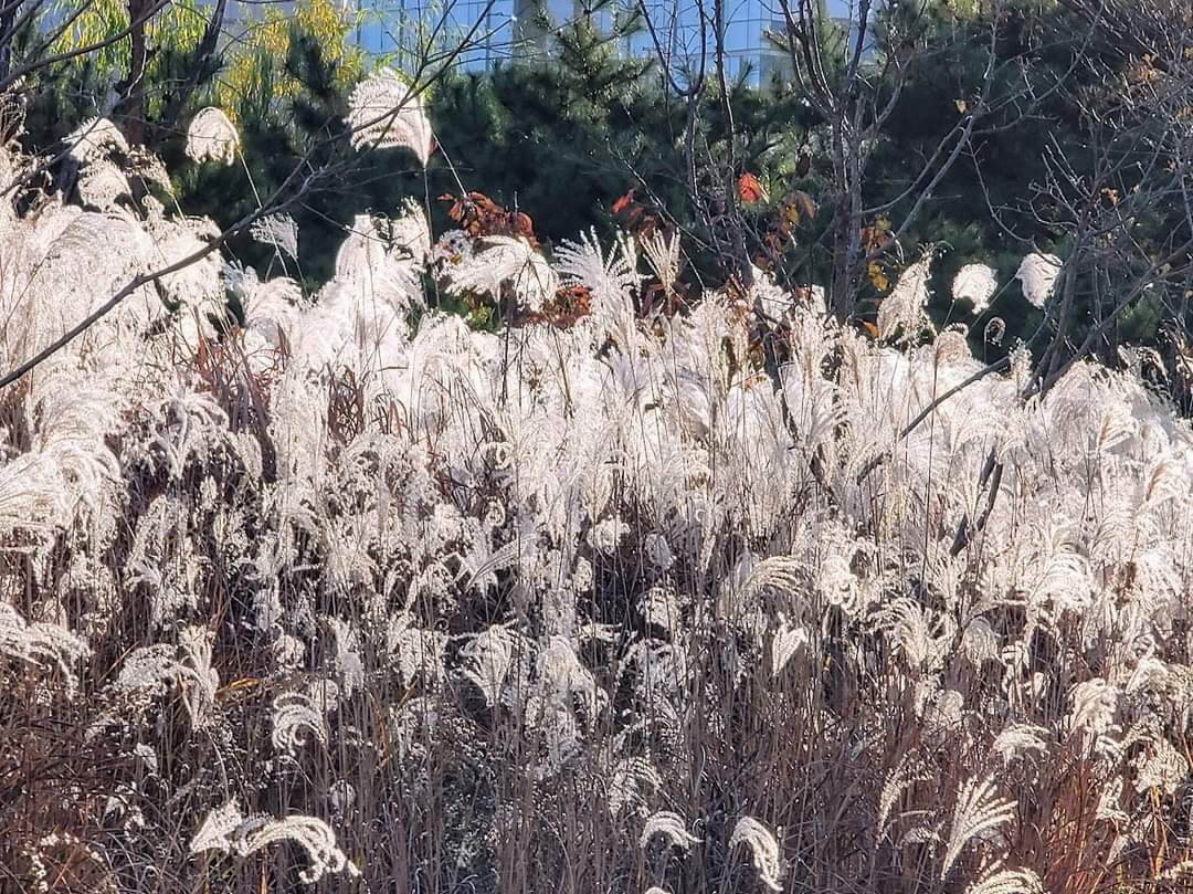 너무 멀리 왔다. 여기서 오늘의 시를 한 편 읽고, 서사의 힘을 위해 신화 속에 나오는 음악 이야기를 한다. 오늘 사진 동네 공원에서 찍은 것이다. 억새가 오후의 빛을 받으며 노래를 하고 있었다.
