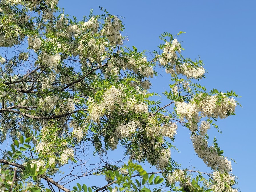 아까시 나무는 북아메리카 원산으로 1900년 초에 무분별하게 벌채에 황폐해진 산림을 복구하고 땔감으로 이용하기 위해 전국에 심어 우리 땅에 정착한 귀화 식물이다. 이 나무는 오늘 아침 사진에서 보는 것처럼 해마다 가지가 부러질 정도로 향긋하고 아름다운 꽃을 가득 피워 사람들이 즐겨 먹는 달콤한 꿀을 제공해주기도 하는 고마운 나무이다. 그리고 인문운동가로서 나는 아카시아 나무를 좋아한다. 이 나무는 어릴 적에는 가시가 많지만, 나이를 먹으면 가시를 없앤다. 인문정신을 고양시키는 나무이다.