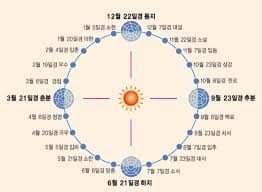 오늘은 춥지만 절기상 입춘이다. '춘(春)', '봄'자 소리만 들어도 기분 좋다. 왜 오늘이 입춘인지는 다음 지도를 보면 안다. 우리가 잘 알고 있는 24절기는 태양의 움직임을 이용하여 24개의 지점으로 구분한 표시를 말한다. 한 달에 2개의 절기가 반드시 들어가며, 계절 당 6개의 절기로 이루어지며 3개월 마다 바뀌는 계절의 변화를 말한다.