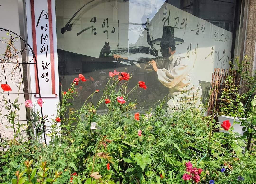 아이들을 오늘 아침 공유하는 시처럼, "숭어"로 "일없는 저녁바다의 수면 위로// 뛰어오르게" 해야 한다. 어제는 봄바람이 불고, 기온도 내려갔다. 나의 복합와인문화공간 <뱅샾62>를 가는 길은 여러 골목이 다 가능하다. 오늘 아침 사진은 우연히 접어든 골목의 서예 학원 앞 화단에서 찍은 것이다. 원예 용 양귀비가 심하게 흔들렸다. 원래 사는 건 흔들리는 것이다. 오늘 이 사진을 공유하는 이유는 '마을이 학교'라는 말을 첨언하고 싶어서 이다.