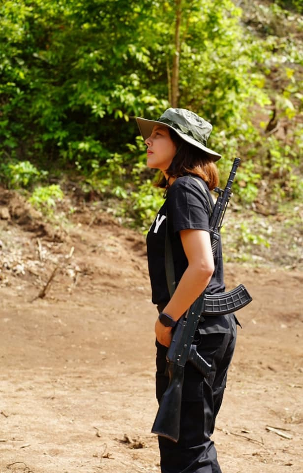 검은 셔츠에 총을 든 사진을 자신의 소셜미디어에 올린 미스 미얀마 출신의 타 텟 텟 씨. 구글에서 캡처