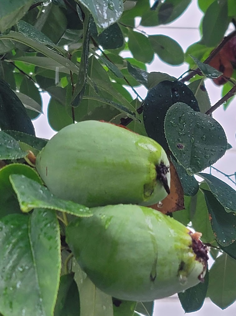 오늘 아침 가진 비를 맞고 있는 모과나무이다. 그래 안도현 시인의 모과나무를 공유한다. "모과나무는 한사코 서서 비를 맞는다." 모과나무는 "끝까지, 바로 그것, 그 푸른 것만 아니었다면/그도 벌써 처마 밑으로 뛰어들어왔을 것이다." '어물전 망신은 꼴뚜기가 시키고, 과일전 망신은 모과가 시킨다'는 말이 있다. 그러나 '도'처럼, 그 모과의 향기는 기가 막히다.