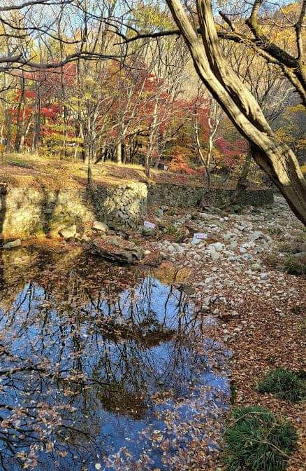 지난 주 계룡산에 내려오면서, 물이 고여 있는 연못을 찍은 것이다. 이상국의 <단풍>이라는 시가 생각났다.