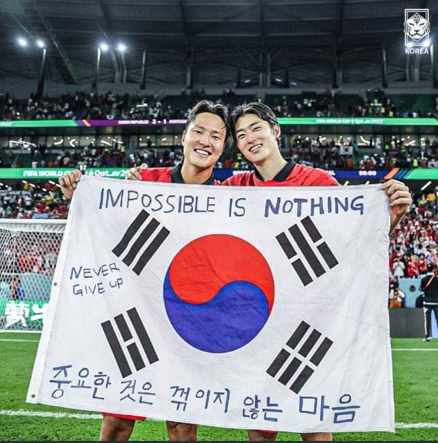 '어차피 끝났다'는 냉소를 물리치고, 세계적 강팀에도 주눅들지 않고 끝까지 '우리의 축구'를 포기하지 않았기에 가능했던 16강이었다. 어느 세대보다 수많은 포기를 강요 받아온 MZ세대(1980년대 초~2000년대 초 출생)는 '포기하지 않고, 버텼을 때, 비로소 자신들이 추구하던 가치를 지킬 수 있다'는 데 공감했다. 그 울림이 압축된 한마디가 '중요한 건 꺾이지 않는 마음'이다. '중꺾마'는 이른바 롤드컵으로 알려진 게임대회(리그오브레전드 월드챔피언십)에서 프로게이머로선 노장인 김혁규가 약체팀을 이끌고 세계 최강팀을 무너뜨리며 밝힌 우승 소감에서 유래됐다. 1차전에서 패배한 김혁규는 "지긴 했지만, 저희끼리만 안 무너지면 충분히 이길 수 있을 것 같다"고 의지를 다졌고, 끝내 이겼다. 7번의 도전 끝에 이뤄낸 언더도그(underdog, 약자)의 승리였다. 2022년의 '중꺾마'는 2002년의 '꿈은 이루어진다'와 결이 좀 다르다. 둘 다 '포기하지마'를 외치고 있다. 하지만 '중꺾마'는 '지더라도 내 길을 꿋꿋이 걸어가겠다'는 것. 즉, '물러섬 없는 과정에 대한 의지의 표명'이다. 반면 '꿈은 이루어진다'는 성취 지향적 소망의 성격이 두드러진다.