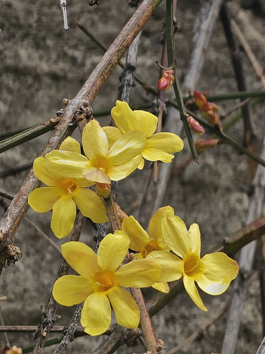 이런 이야기는 내일로 넘긴다. 봄이 기다려진다. 그래 오늘은 이성부 시인의 <봄>을 공유한다. 오늘 산책 길에서, 오늘 아침 사진처럼, 영춘화(迎春花)를 만났다. 언뜻 보면, 개나리인가 하지만, 영춘화이다. 봄을 맞이하는 꽃이다. 자세히 들여다 보면, 꽃잎의 숫자가 6개이고, 꽃의 크기가 작다
