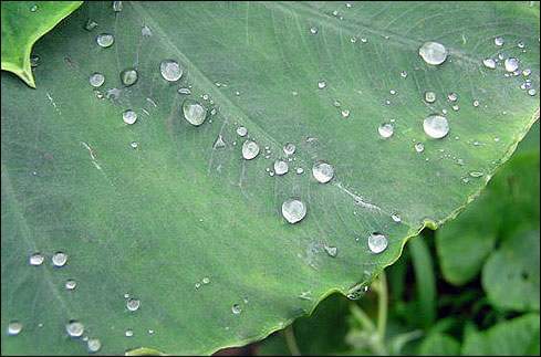 토란잎이 물방울을 털어내기도 전에