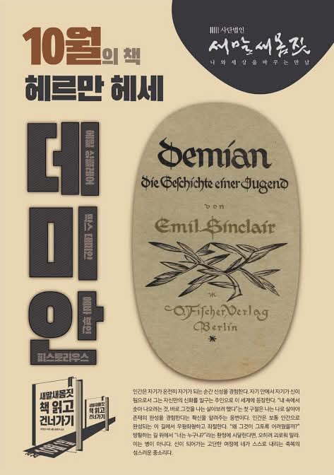 이번 10월은 독일 작가 헤르만 헤세의 『데미안』이다. 학창 시절에 읽었지만, 이번 기회에 다시 수련하는 마음으로 읽을 생각이다. "인간은 자기가 온전히 자기가 되는 순간 신성(神性)을 경험합니다. 자기 안에서 자기가 신이 됨으로서 그는 자신만의 신화를 일구는 주인으로 세계에 등장하지요." 이달의 책으로『데미안』을 선택하면서 최진석 교수가 한 말이다.『데미안』의 첫 문장은 이렇게 시작한다. "내 속에서 솟아 나오려는 것, 바로 그것을 나는 살아보려 했다." 이 문장을 최교수는 "나는 나로 살아야 존재의 완성을 경험한다는 확신을 알려주는 웅변"이라 했다.