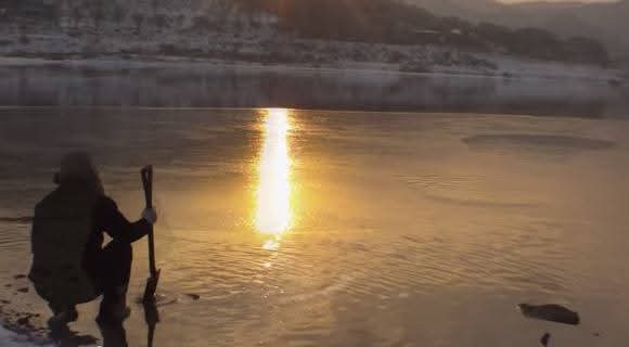 흐르는 물에 삽을 씻고