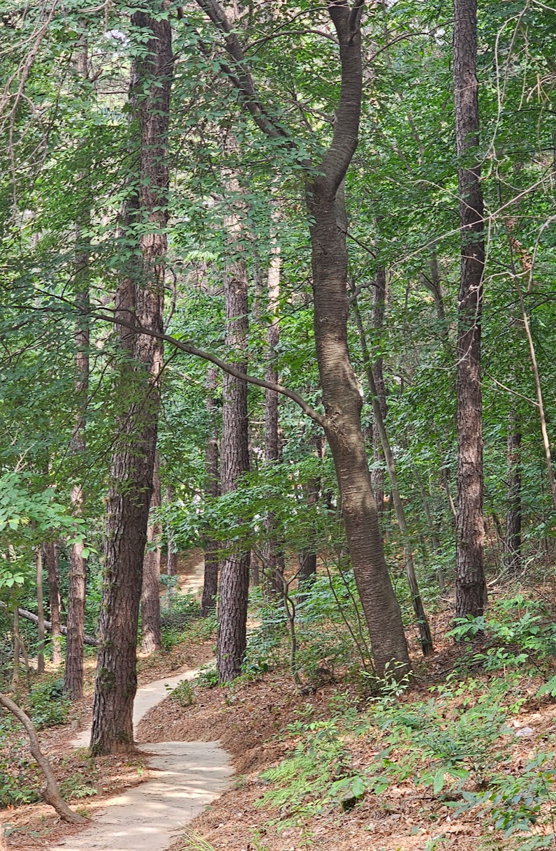 6월의 한복판인데, 벌써 무덥다. 더위를 이기는 길은 고요를 얻고 마음의 비움을 통해 얻을 수 있다. 옛 어른들은 더위를 피하는 방법으로 고요를 얻고 마음의 텅 빔을 얻는 것에 있다고 했다. 그 말은 마음에 번뇌가 적고 몸에 괴로움이 사라진 상태이다. 우리는 이를 어려운 말로 적정(寂靜)이라 한다. 적정이라는 말은 불교 용어이다. 마음에 번뇌가 없고, 몸에 괴로움이 사라진 해탈, 아니 열반의 경지이다. 이 적정에 이르면 더운 줄을 모르게 된다는 뜻일 테니 마음을 항복 받는 일이 그만큼 중요하다는 뜻일 테다. 마음을 항복 받는다. 그냥 있는 그대로 눈 앞에 벌어지는 일을 받아들인다는 말이다. 가장 좋은 것이 숲 길을 조용히 걷는 일이다. 왜냐하면 숲이 주는 최고의 선물이 고요함이기 때문이다. 숲길에 이르면 뒤이어 저절로 뒤따르는 것이 충만한 행복감이다. 우리가 쫓아가는 것이 아니다. 천천히 걷는 우리에게 고요와 행복이 조용히 다가온다. 그리고 마침내 들리기 시작한다. 멀리 떨어진 교회 종소리, 묻어 두었던 마음의 소리, 양심의 소리와 함께. 오늘 아침 사진 집 근처의 숲으로, 맨발로 걸을 수 있도록 정돈된 길이다.