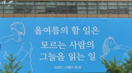 교보생명 광화문 글 판 '여름 편'은 오늘 공유하는 김경인 시인의 <여름의 할 일>에서 뽑았다. "올 여름의 할 일은/모르는 사람의/그늘을 읽는 일". 타인의 마음을 읽고 상처를 어루만져 주는 일은 인간만이 갖고 있는 '즐거운 숙명'이다. 주위 사람의 상처와 아픔을 함께 느끼고 함께 슬퍼하는 일이 사소해 보이지만 누군가에게는 시련을 이겨내는 큰 힘이 될 수 있기 때문이다.