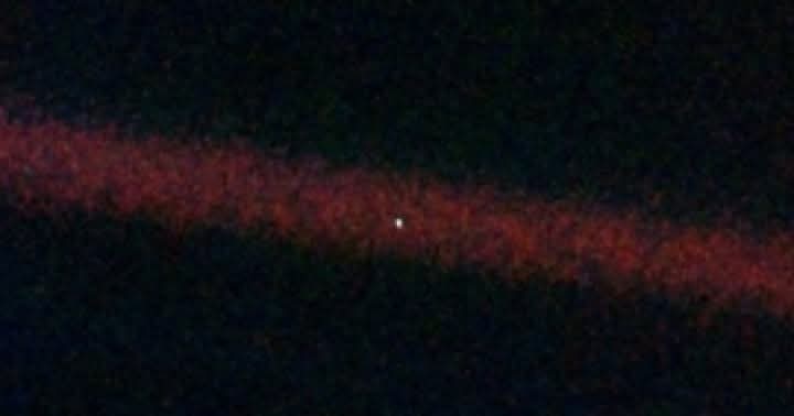 사진 구글에서 캡처: 가운데 있는 "창백한 푸른 점"(칼 세이건)이 우리가 살고 있는 지구이다. 천문학자 칼 세이건의 부탁으로 우주선 보이저 1호가 태양계에서 600억 km 떨어진 거리 촬영한 지구 사진을 전송하였던 것이다. 칼 세이건의 말을 공유한다. "저 점이 우리가 있는 곳입니다. 저곳이 우리의 집이자, 우리 자신입니다. 여러분이 사랑하는, 당신이 아는, 당신이 들어본 그리고 세상에 존재했던 모든 사람들이 바로 저 작은 점에서 일생을 살았습니다." "현재까지 알려진 바로 지구는 생명을 간직할 수 있는 유일한 장소입니다. 적어도 가까운 미래에 인류가 이주할 수 있는 행성은 없습니다. 잠깐 방문할 수 있는 행성은 있겠지만, 정착할 수 있는 곳은 아직 없습니다. 좋든 싫든 간에 당분간 지구에서 삶을 영위해 나가야만 합니다. '나에게 이 사진은, 우리가 서로를 더 배려 해야 하고, 우리가 아는 유일한 삶의 터전인 저 창백한 푸른 점을 아끼고 보존해야 한다'는 책임감에 대한 강조입니다." (칼 세이건)