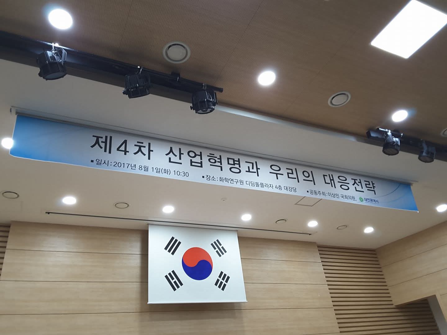 이상민 의원과 대전시의 공동주관으로 "제4차 산업혁명과 우리의 대응전략"이란 세미나가 집 근처에 있는 화학연구소에 있었다.