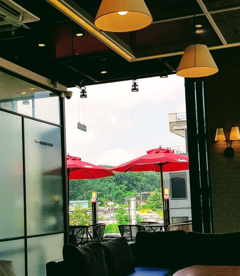 자, 차린다. 이제 나는 뜻밖의 커피를 마시며