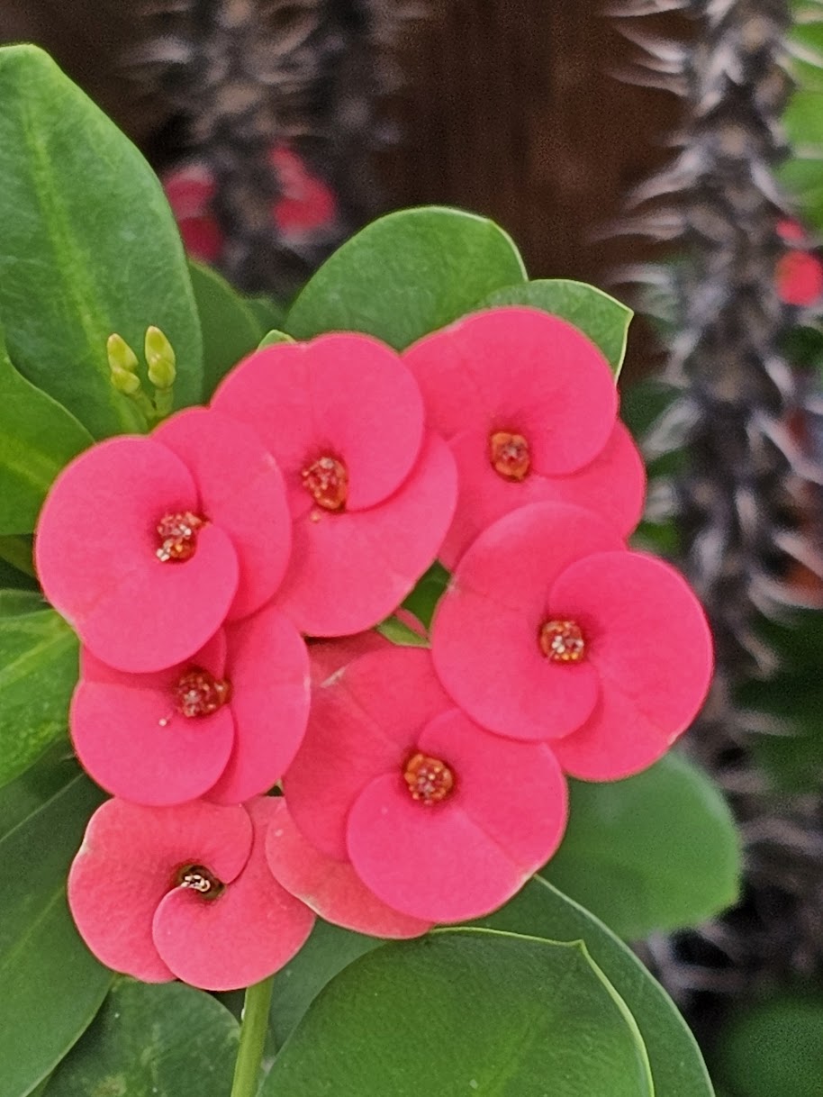 "내가 세상에 평화를 주러 왔다고 생각하느냐? 아니다. 오히려 분열을 일으키러 왔다."(<루가 복음> 12:51) 어제 미사의 복음 내용이다. 예수는 분명 평화의 주님이시다. 부활하신 예수가 제자들에게 처음 건넨 인사가 "평화가 너희와 함께" 였다. 그렇다면 여기서 분열은 무엇인가? 그것은 우리가 종종 도피처로 삼고자 하는 거짓 평화의 실체를 드러내시고 부수어 버리는 분열이다. 우리는 어떤 분열이나 어려움, 소란 등이 일어날까 두려워 잘못된 부분을 덮어두고 모르는 척하며 누리는 평화는 참된 평화가 아니다. 그것은 마치 염증처럼 피부 속에 있어 겉으로 보이지 않지만, 그냥 두면 점점 곪아 언젠가는 터지고 만다. 예수는 숨어 있는 거짓 평화의 염증을 짜서 터뜨리시려고, 그 상처 위에 참된 평화의 새살이 돋아 나게 해 주시려고 세상에 오신 분이다. 부활하신 예수께서 제자들에게 전하신 평화의 인사는 이러한 전통을 기꺼이 겪음으로써 얻는 참 평화를 뜻한다. 이처럼 참 평화를 얻고자 하려면 오랜 시간 내가 익숙해져 있는 '거짓된'평화의 틀을 깨고 나오는 과감한 용기가 필요하다. 그 용기는 경계에 서는 일이기도 하다. 경계에 서는 일이 오늘의 화두이다. 우선 오늘의 시를 먼저 읽는다. 오늘 아침은 꽃은 가시들의 경계에서 핀다. 이름이 '꽃기린'이다.