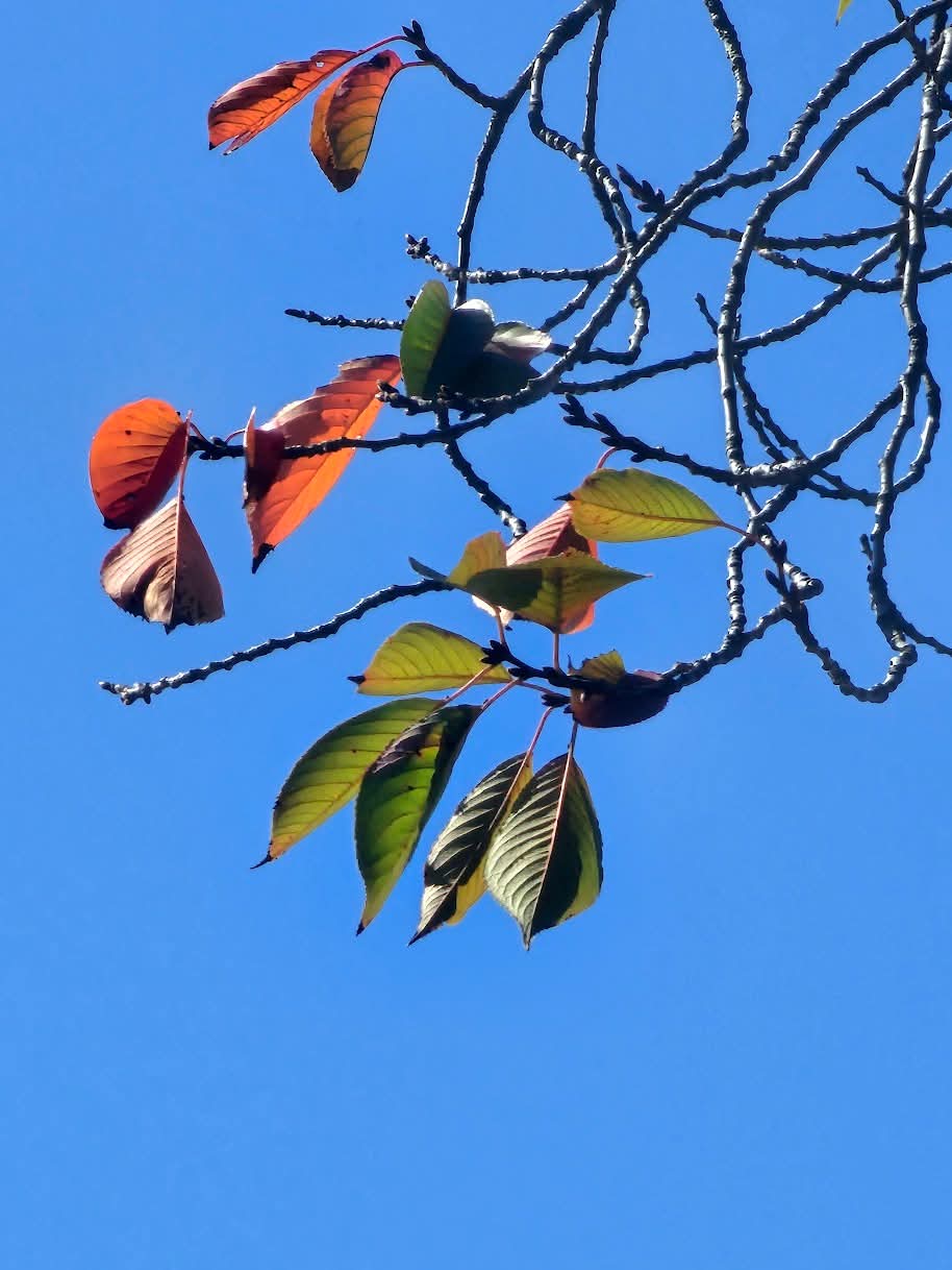 오늘 아침 사진은 강의 중간에 길 가의 한 벤치에서 만난 하늘이었다. 단풍은 ‘초록이 지쳐 단풍 드는’ 것이 아니라, 초록의 생명이 마지막 열정으로 뿜어낸 절정의 환희일 것이다. 노년도 저 금빛의 풀밭과 단풍 든 나무들처럼 아름다운 모습으로 서서히 사라져가는 것이다. 그러니 늙는 것을 서러워 말 일이다. "가만히 오므린" 단풍 손이 가을에 지친 하느님과 나를 '뜨겁게' 받아 모시겠다고 말한다.